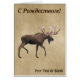 A "vintage look" digital painting of a bull moose (Alces alces) superimposed on an old paper or parchment background image. Cyrillic (Russian) text reading "С Рождеством" (S Rozhdestvom - A Russian Christmas greeting) also appears. Add your own additional text.