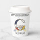 Stylish, funny, artistic monogram. Here is the letter "G". Neoplasticism style, or De Stijl, line and colour artistic decoration, the funny bird sits on the letter. The field of art is located under the letter. the template name and the template text "GEORGIA" is located under the image. The template text "HAPPY 16TH BIRTHDAY" is located over the image. An elegant and unique two sides printed paper cup for anyone. This design is fully customisable. You can change or delete the template name and the template text, and you can change the image. If you wish to change fonts, colours, sizes or the whole composition of the design feel free to use the "Edit Design" or "Personalise" (as the case may be) button of the blue colour to further customise it. You will be transferred to the "Design Tool" where you can find fonts, colours, sizes on the right menu; layers, images, geometric elements, backgrounds on the left menu. Just be creative, customise, buy one, enjoy, and be happy!