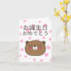 Japanese language birthday card with happy birthday message in Japanese (お誕生日おめでとう, o-tanjoubi omedetou, happy birthday in Japanese) and cute Japanese style illustration. This Japanese greetings card is blank inside for your own message.