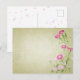 Delicate and graceful, this postcard features soft watercolor-style pink dianthus flowers (nadeshiko) on a calming green background.