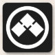 【まるにちきり】 榺は機織の道具で経巻具(たてまきぐ)ともいう棒である。榺紋は巻き付けた糸で経巻具が繋がっている状態を描いている。また、木材の部材と部材を繋ぎ合わせる切り込みの形状も表す言葉であり、こうした堅く結びつく状態をイメージした瑞祥的な意義で文様となったと考えられる。文様としては藤原時代から用いられ『年中行事絵』や『春日権現験記絵』などにも見え、文様から家紋になったものであろう(高澤等著「家紋の事典」) なお、「平安紋鑑」は榺を千切と表記している。