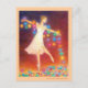 クリスマスツリー用のストリングライトで遊びながらアチチュードのポーズをとるバレエダンサーを描いた水彩画です.  バレエを習っているお友達や先生へのクリスマスカードに最適です! www.Gifts4Dancers.com