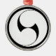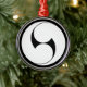 【みぎふたつともえ】巴紋/忠臣蔵の大石内蔵助がこの「右二つ巴」を使用/この図案は、地抜き(摺込み)仕様です。摺込みというのは・・作図して巴を切り抜いて型紙を作り・・この型紙を生地の上に置き、塗料を刷毛で摺込む、その技法からきた言葉です(泡坂妻夫著「卍の魔力、巴の呪力」P146参考)