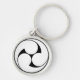 【ひだりみつともえ】巴紋/巴の左右は渦の巻き方ではなく、作図上から作られた合理的な名称なのでした。こうしたことは、上絵師ならすぐに判ることですが、一度も紋を作図したことのない先生はただ渦の巻く方向にだけ気を取られるのでしょう。しかし、上絵師でも咄嗟に巴の左右に迷うことがあります。そんなとき、上絵師はうまい口伝を思い出します。・・・まず左掌を握って手首を見ます。するとその形が左巴の形になっているのです。右掌を握れば、たちどころに右巴の形が現れるわけです。(泡坂妻夫著「家紋の話」P61)/この図案は、地抜き(摺込み)仕様です。摺込みというのは・・作図して巴を切り抜いて型紙を作り・・この型紙を生地の上に置き、塗料を刷毛で摺込む、その技法からきた言葉です(泡坂妻夫著「卍の魔力、巴の呪力」P146参考)