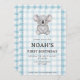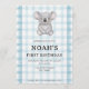 001 Sky Blue Plaid Koala 1st Birthday Invitation
