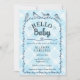 002 Cerulean Watercolor Gingham Birds Baby Shower Invitation
