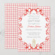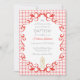 007 Red Scroll Gingham Cross Candle Baptism Invitation