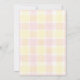 This editable baby shower invitation features a cute illustrated stork flying ahead of the bright boho sun. The background is a soft watercolor plaid background. Colors used: 007 Red & 015 Lemon