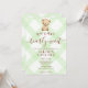 017 Moss Green Teddy Bear Gingham Baby Shower Invitation