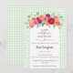 Soft watercolor roses bloom gently atop a graceful white scallop arch that frames this “A Little Wildflower is on the way” baby shower invitation. The word “Wildflower” is set in delicate script, finished with a dainty heart line swash that adds a tender flourish. Behind it all, a soft watercolor gingham backdrop lends a touch of timeless charm, creating a baby shower invitation that feels fresh, romantic, and beautifully heartfelt.