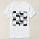 A bold geometric design made up of curved angle shapes in arranged in alternating directions with alternating colours.