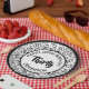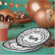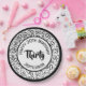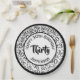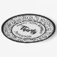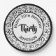 This design is a black and white random number pattern with milestone number 30 repeated in varied sizes and angles.  Your text is printed on the white circle in the centre.  The design is trimmed with white and black rings around the rim.