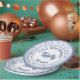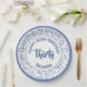 This design is a blue and white random number pattern with milestone number 30 repeated in varied sizes and angles. Your text is printed on the white circle in the centre. The design is trimmed with white and blue rings around the rim.