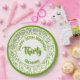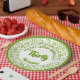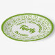 This design is a green and white random number pattern with milestone number 30 repeated in varied sizes and angles. Your text is printed on the white circle in the centre. The design is trimmed with white and green rings around the rim.
