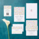 This wedding invitation collection features strings of pastel pretty origami paper cranes which makes it perfect for Asian themed celebrations. This is a nod to the ancient Japanese legend of folding 1,000 cranes for a thousand years of happiness and prosperity. Colours can be customised to suit your wedding's motif.