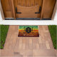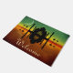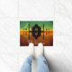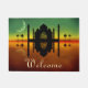 Orient night illustration: A mosque and palms silhouette on a night sky background with the moon and stars reflecting on water.