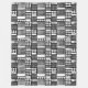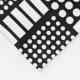 An original hand drawn abstract pattern design made up of arrangements of dots in a variety of sizes interspersed with solid rectangles and lines.