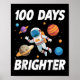 100 Days Brighter Space Astronaut 100th Day Of Poster