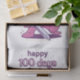 Cute design featuring an axolotl wearing a backpack and holding a big pen with the quote "Happy 100 days of school". Happy 100th day of school or kindergarten.