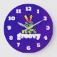 100% Groovy Rainbow Hand Peace Sign Acid Purple Large Clock
