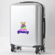 The stick looks amazing. Unfortunately, it would not stick on our suitcase as it was textured. When we found a non-textured (smooth) suitcase, the sticker stuck and looks great. The printing looked awesome.