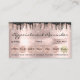 100 Lashes Appointment Reminder Rose Glitter Drips Business Card