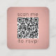 Simplify RSVP responses and provide any important details with chic modern QR code square enclosure cards. All text is simple to customise, including wording that reads "scan me to rsvp". To make your own QR code using the generator, simply type the website URL into the template. By scanning the card with their phones, guests are sent directly to the wedding website to reply to the invitation. An online rsvp process reduces the chance that cards will be lost in the mail. It's also more versatile, in that you can ask for more detailed information, such as meal choices, food allergies, and song requests. All response information can be personalised or deleted. The pink and black design features a faux foil background and elegant modern typography. Please note that rose gold is printed colour, not metallic foil. This card is a stylish way of asking wedding guests to kindly reply to your upcoming special day celebration.