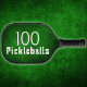 Signature piece 2025 in dark green with white font. The '100 Pickleballs' pickleball paddle.