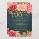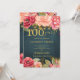 Luxury elegant vintage rustic stylish 100th birthday party invitation template featuring blush pink and peach cream gold glitter peony roses and blooms garlands and golden strings or twinkle lights on a midnight blue chalkboard background. ----- The invite is suitable for spring or summer night, autumn fall rustic or garden vintage outdoor milestones birthday parties - thirty, forty, fifty, sixty, seventy, eighty, ninety, one hundred - or other feminine anniversary or celebrations.