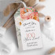 Beautifully elegant and so charming, this peach and white watercolor floral birthday favour tag celebrates "100 Years Loved". It's a sweet sentiment to remind the guest of honour just how much they are loved and admired. The lovely design features a beautiful bouquet of peach and ivory white watercolor peonies, eucalyptus and trailing greenery on a neutral light sage green background. Trendy type face pairings and an arch shaped frame make your text pop with style. Personalise the easy to use text template with the age and name of the guest of honour.
