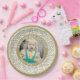 100 Your Photo Random Number Pattern Gold/White Paper Plate