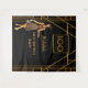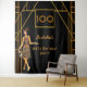 Elegant faux gold and glam welcome banner, wall decoration or photo backdrop for a 100th birthday party! Art deco style faux gold and black for a glamourous celebration. Decorated with a 1920's style flapper girl and art deco style pattern. Templates for the age 100 and a name.