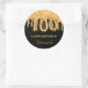 Elegant, classic, glamourous and girly for a 100th birthday party.  A chic black background. Decorated with faux gold glitter drips, paint dripping look. Personalise and add a name.  With the text:  Happy Birthday.  The name is written with a modern golden coloured hand lettered style script.   Number 100 is written with a balloon style font.