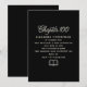 Elegant black and white invitation features white pearl script and a tiny pearl book on a black background. Chapter 100 gives it a trendy vibe and the book at the bottom adds whimsical touch. Perfect for a reader or book lover!