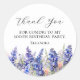 Elegant blue larkspur flowers create a pretty thank you sticker. Larkspur or delphinium wildflowers are the July Birth Flower, so this is a perfect floral design for a July birthday. Open and airy script spells thank you. Two lines of text let you personalise a thank you statement and your name. All of the text is editable.