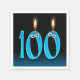 Happy birthday candle with eyeballs on black and blue gradient background for a 100th birthday party