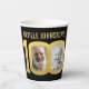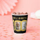 Personalize these modern black and gold 100th birthday party paper cups with your own birthday name and four photographs of your choice in the two 00 of 100. Fun text and personalized photo design. Ideal for using at a centenarian's birthday party to show a photo of your birthday boy or girl now and one from their past. Other matching items are available. © Original graphic art and design by www.mylittleeden.com
