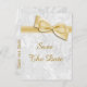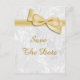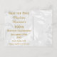 Womens' elegant 100th Birthday Party save the date postcards. Woman's one hundredth birthday party save the date cards. Beautiful white damask pattern background of flourishes and swirls with a pretty, stylish romantic gold bow and ribbon image. These glamourous, chic, classy save the date postcards are beautifully sophisticated and are decorated / printed on both sides. PLEASE NOTE: All products on Zazzle have flat printed images. Bow and ribbon images purchased from digital-designs-by-elena. If you need any assistance customising your product please contact me through my store and I will be happy to help. I also have other matching products in my store.