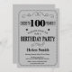 100th Birthday Invitation Black and Silver Grey