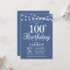 100th Birthday Invitation with String Lights.Blue Background. Men or Women Birthday. 13th 15th 16th 18th 20th 21st 30th 40th 50th 60th 70th 80th 90th 100th, Any age. For further customisation, please click the "Customise it" button and use our design tool to modify this template.