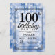 100th Birthday Invitation with Blue String Lights with Blue Glitter Background. Blue Birthday. Adult Birthday. Men or Women Bday Invite. 13th 15th 16th 18th 20th 21st 30th 40th 50th 60th 70th 80th 90th 100th, Any age. For further customisation, please click the "Customise it" button and use our design tool to modify this template.