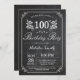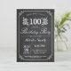 100th Birthday Invitation with Rustic Chalkboard Background and Floral Flower Pattern, Black and White. Adult Birthday. Male Men or Women Birthday. Kids Boy or Girl Lady Teen Teenage Bday Invite. 13th 15th 16th 18th 20th 21st 30th 40th 50th 60th 70th 80th 90th 100th. Any Age. For further customisation, please click the "Customise it" button and use our design tool to modify this template.
