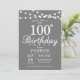 100th Birthday Invitation with String Lights.Grey Background. Men or Women Birthday. 13th 15th 16th 18th 20th 21st 30th 40th 50th 60th 70th 80th 90th 100th, Any age. For further customisation, please click the "Customise it" button and use our design tool to modify this template.