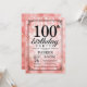 100th Birthday Invitation Pink Glitter