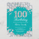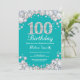 100th Birthday Invitation. Teal and Silver Rhinestone Diamond Teal Turquoise Aqua Background. Elegant Birthday Bash invite. Adult Birthday. Women Birthday. Men Birthday. For further customisation, please click the "Customise it" button and use our design tool to modify this template.
