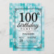 100th Birthday Invitation with Teal String Lights with Teal Glitter Background. Teal Birthday. Adult Birthday. Men or Women Bday Invite. 13th 15th 16th 18th 20th 21st 30th 40th 50th 60th 70th 80th 90th 100th, Any age. For further customisation, please click the "Customise it" button and use our design tool to modify this template.