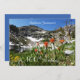 The front of this trendy personalised invitation is our original photograph of beautiful mountains, an icy lake, and colourful wildflowers; text is white. Reverse is blue, with white invitation text. A beautiful invitation to a 100th Birthday party. Original photograph by Alan Socolik. All Rights Reserved © 2015 Alan & Marcia Socolik.