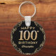 100th Birthday Party Black and Gold Glitter Frame Key Ring