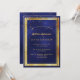 A trendy, modern 100th birthday party invitation card for men, guys, male. A dark blue, navy blue background. The blue colour is uneven. With a faux gold frame and golden confetti sprinkle, golden coloured letters. Templates for your party information.