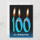 Aqua and blue gradient background with eyeballs on candles for 100th Birthday party invitation.